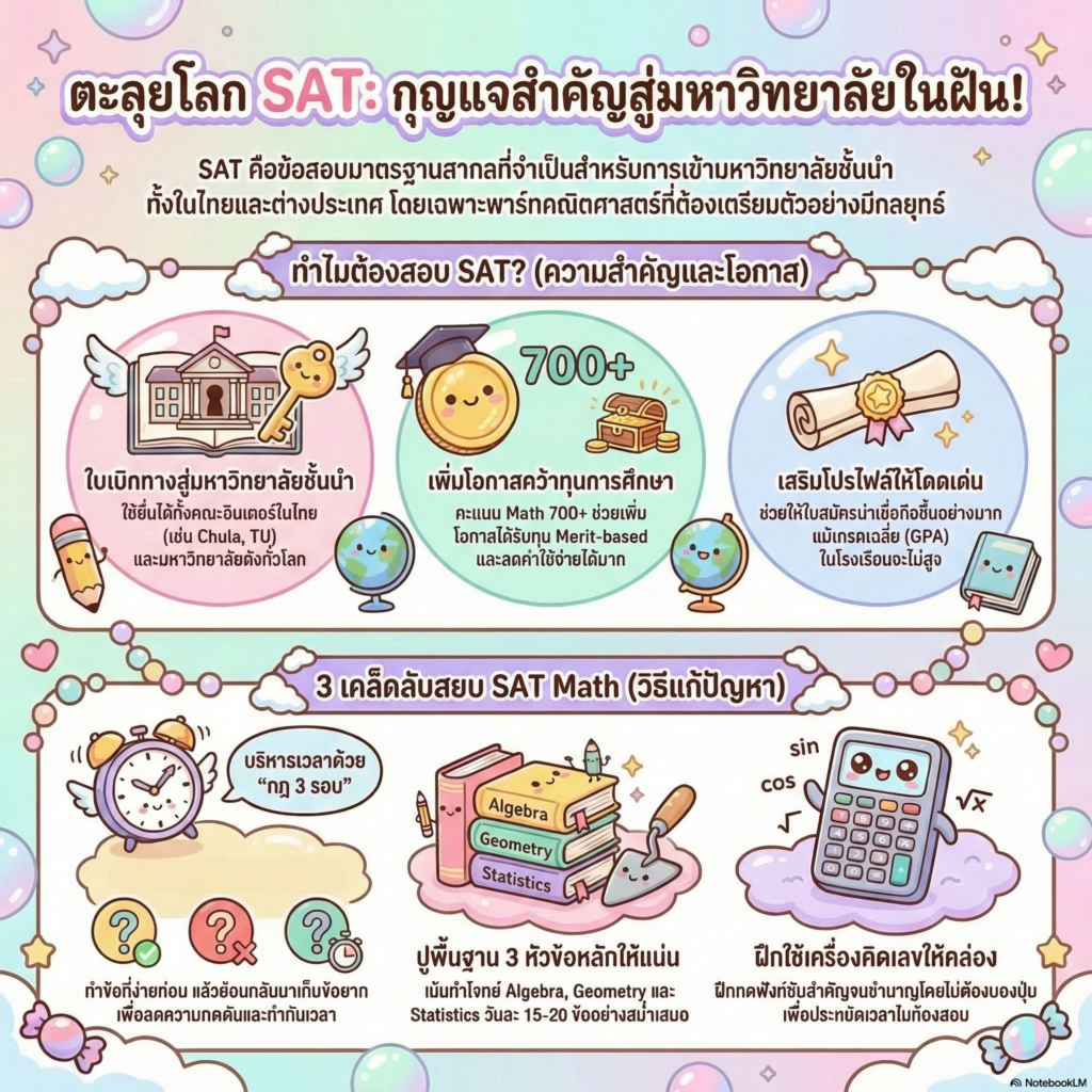 • SAT Math มีบทอะไรบ้าง? สรุปครบในบทความเดียว อ่านจบ รู้ทิศทางสอบทันที