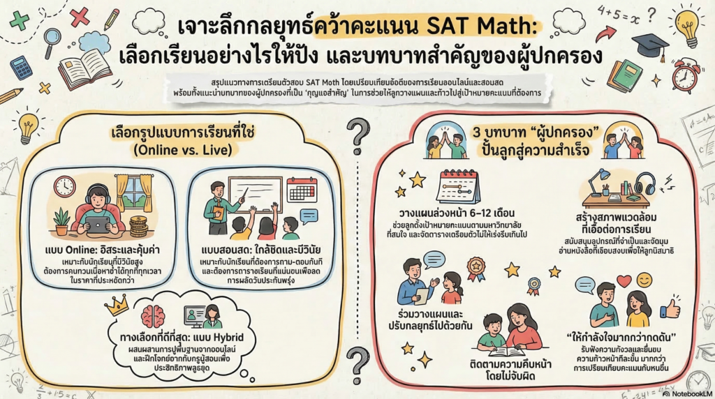 เรียน SAT Math Online หรือสอนสด แบบไหนเหมาะที่สุดสำหรับนักเรียน ม.ปลาย และบทบาทผู้ปกครองในการเพิ่มคะแนนสอบ SAT Math